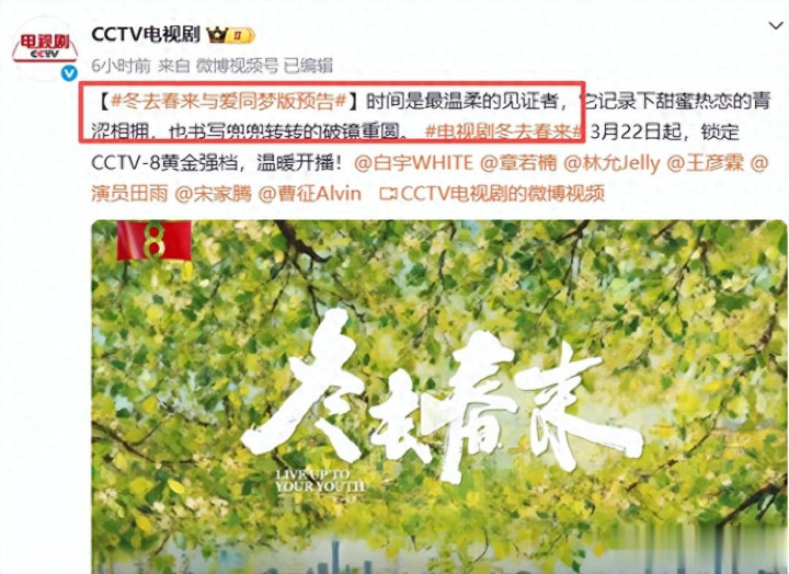 3 月 22 日晚七点半,32 集年代剧《冬去春来》将施展登陆央视八套黄金档,爱奇艺、咪咕视频同步上线。该剧凭借塌实的制作与巨大的主创声威,未播先火,预约量冲破 65 万,被不雅众委托 “剧王” 的期待。