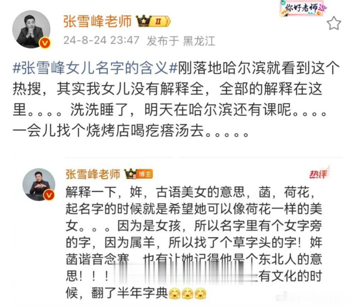 张雪峰对犬子满喜爱爱,花半年时辰查字典取名字,却莫得细说这份父爱的细节,更莫得说起他为犬子提前计较的一切。