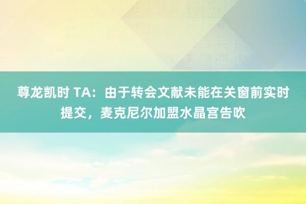 尊龙凯时 TA:由于转会文献未能在关窗前实时提交,麦克尼尔加盟水晶宫告吹