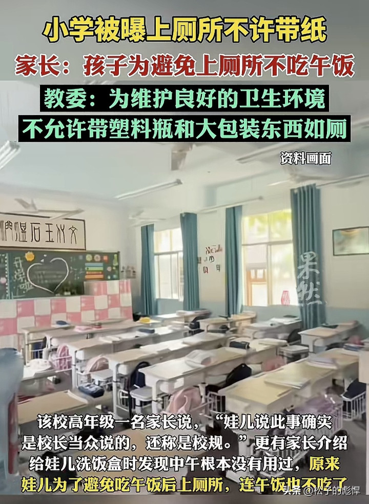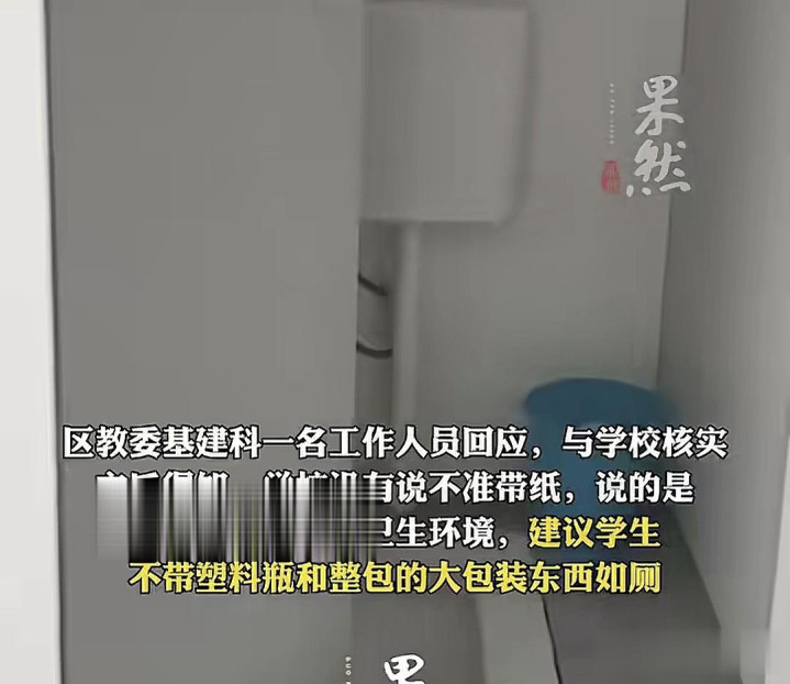 另外区教委历程了解,经查学校照实莫得规则上茅厕不让带纸,而是提议学生上茅厕别带水瓶和大包装物品。