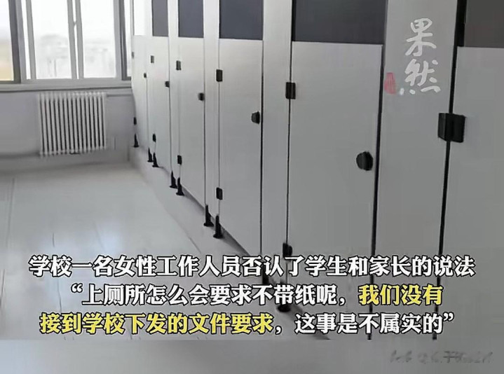 涉事学校安分称统统不是真的,学生和家长说的分袂,咱们怎样可能上茅厕不让带纸,规则在哪?莫得看到文献落地。