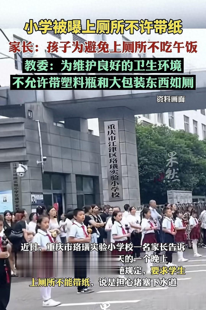近日,重庆珞璜施行小学的家长告诉《大风新闻》,学校倏得出了一个规则条目总计学生上茅厕不可带纸,事理怕堵塞。
