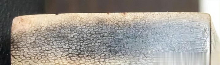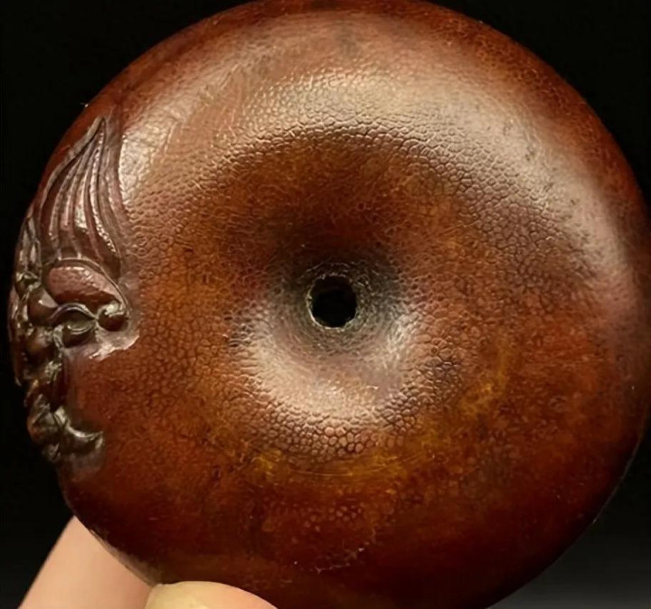 民众不错看到,这个纹理照旧很卓越的,由一个个紧挨着小圈拼接而成,每个小圈都有一个小白点。有点像皮肤发囊肌理,这是常见仿品水牛角、驴蹄子所莫得的。