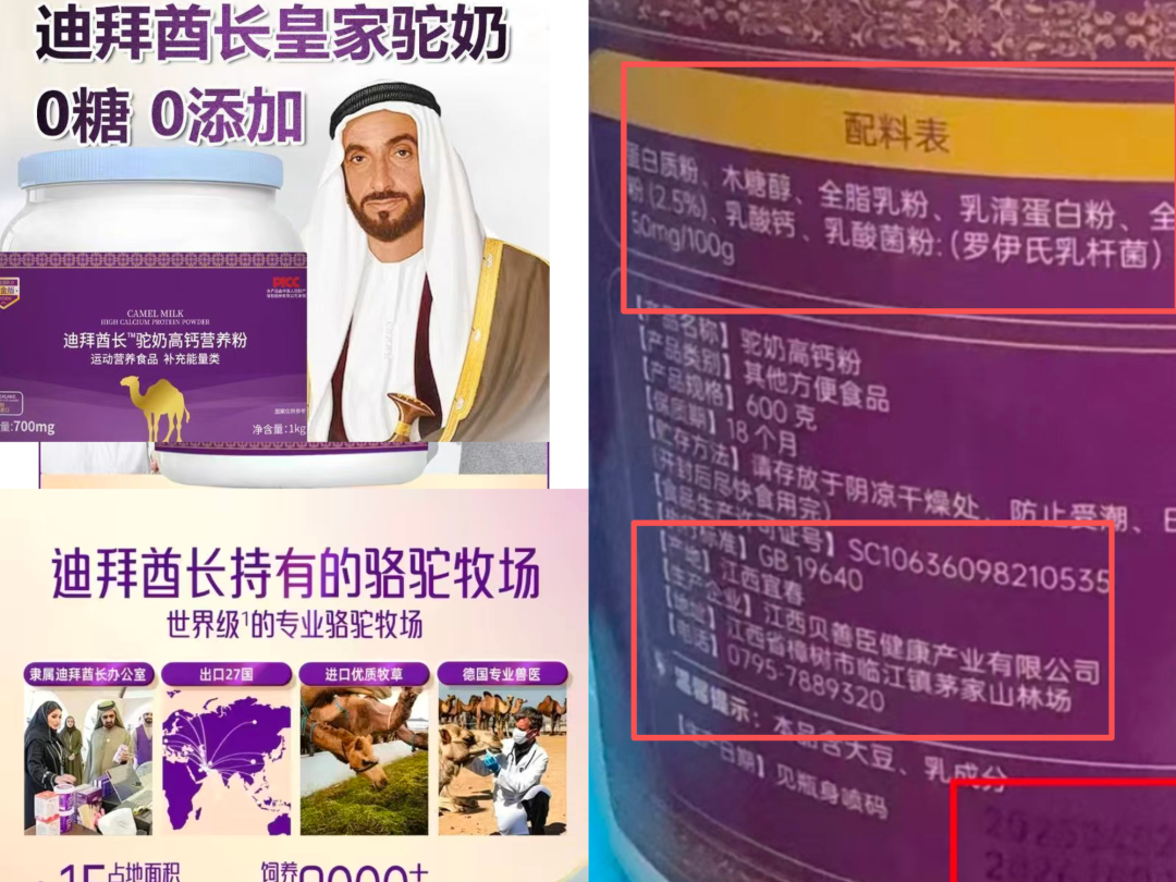 标着“新疆真驼奶”的罐子里,装的却是大豆粉和燕麦粉;堪称“迪拜皇室专供”的入口驼奶,实践产自江西某地代工场;直播间里信誓旦旦“调理三高”的神奇功效,大家却说“痛苦科学依据”……